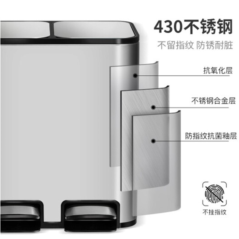 清潔工具 佳佰 腳踏分類垃圾桶28L 帶蓋 不銹鋼戶外辦公雙桶紙簍